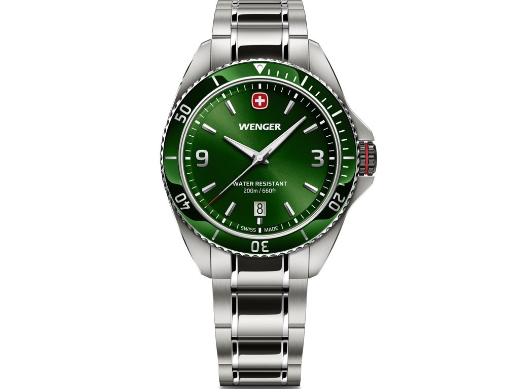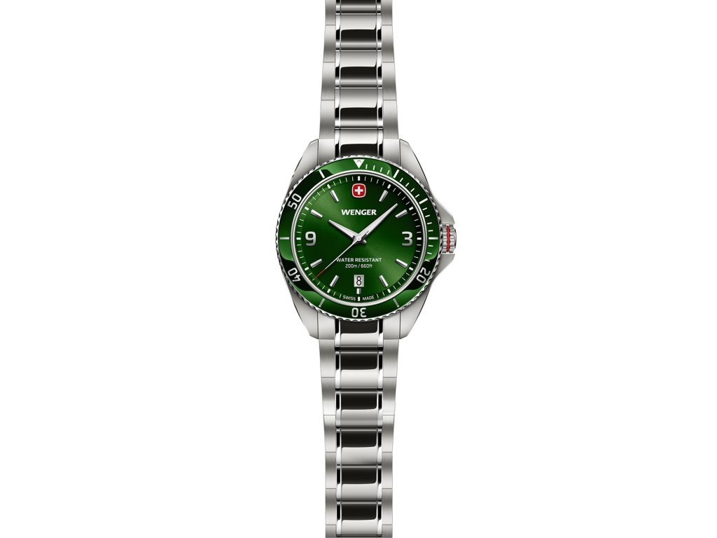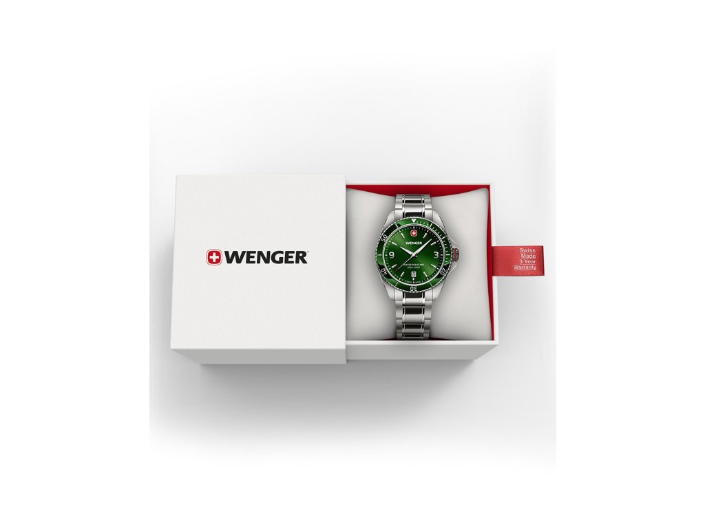 - Veškeré hodinky značky WENGER se mohou pyšnit označením SWISS MADE a jsou kryté odolným safírovým sklem.