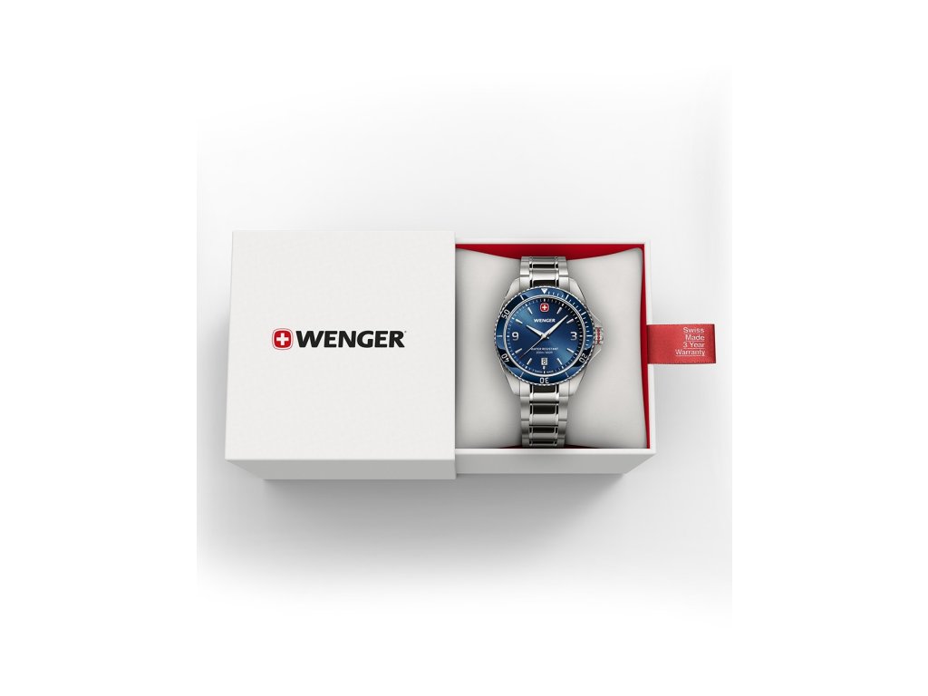 - Veškeré hodinky značky WENGER se mohou pyšnit označením SWISS MADE a jsou kryté odolným safírovým sklem.