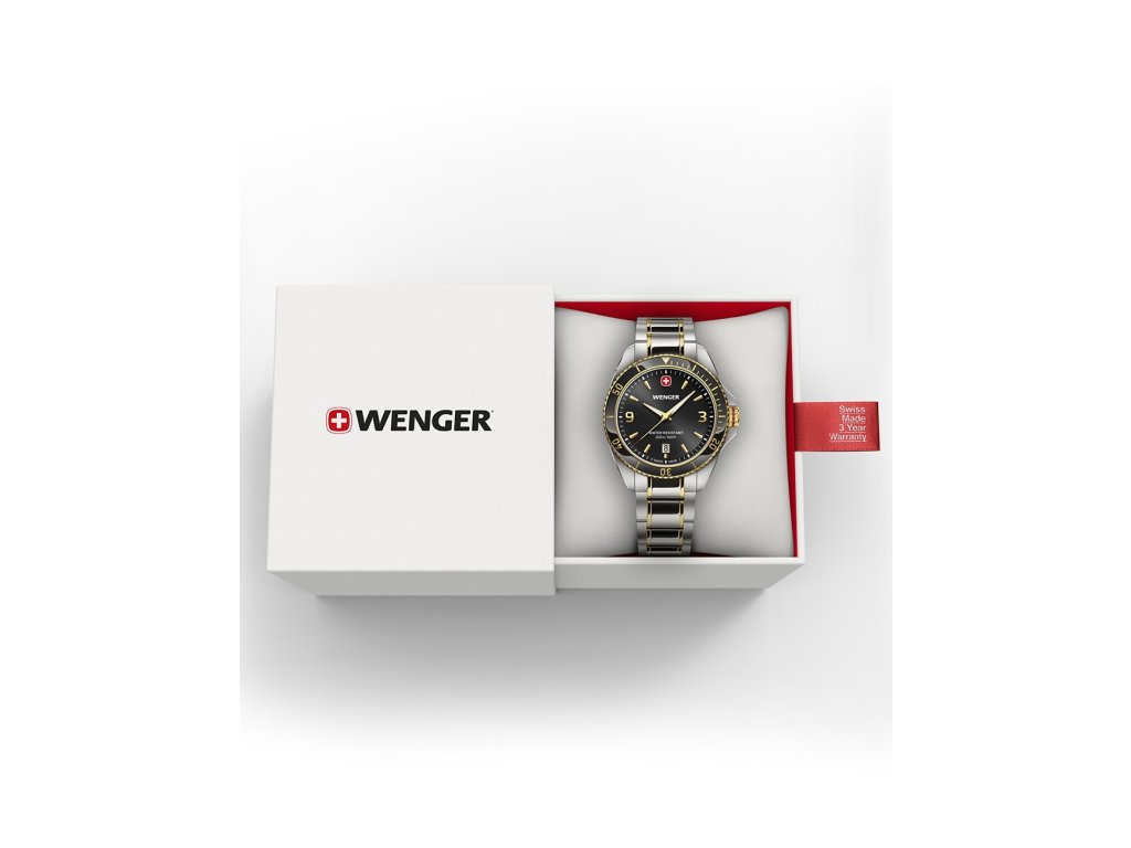 - Veškeré hodinky značky WENGER se mohou pyšnit označením SWISS MADE a jsou kryté odolným safírovým sklem.