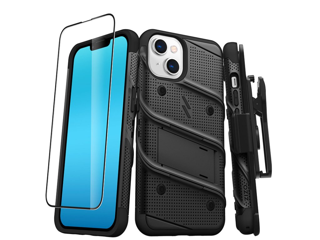 Ochranné pouzdro ZIZO BOLT je vybaveno integrovaným stojanem na video a odnímatelnou rukojetí s 360° otočným klipem na opasek. Gumová tlačítka hlasitosti a boční tlačítko se pohodlně používají a omezují vnikání prachových částic a nečistot do telefonu. Pouzdro je vybaveno firemním tvrzeným sklem s tvrdostí 9H a tloušťkou pouhých 0,33 mm.